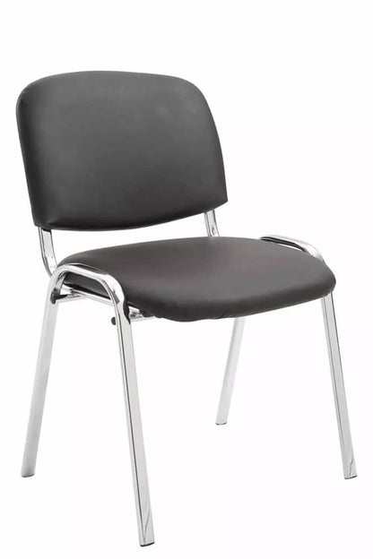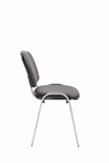 Naast de uitstraling en het tijdloze design kenmerkt deze fauteuil zich vooral door de gestoffeerde zitting, waardoor ook langer zitten niet inspannend wordt. De zitting en rugleuning zijn bekleed met een onderhoudsvriendelijke kunstleren bekleding. Stabiliteit en stabiliteit worden gegarandeerd door het vierpoots metalen frame met chroomlook. Bovendien is deze vergaderstoel tot vier stoelen stapelbaar en ruimtebesparend op te bergen. Dit maakt hem ideaal voor beurzen, evenementen en dergelijke.