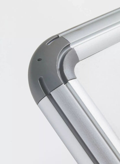 Hoogwaardig whiteboard van wit geëmailleerd staal (800C). Whiteboard voor zeer intensief en duurzaam gebruik. Geanodiseerd aluminium designprofiel met kunststof grijze hoeken. Inclusief ophangmateriaal en stiftbakje van 30 cm.