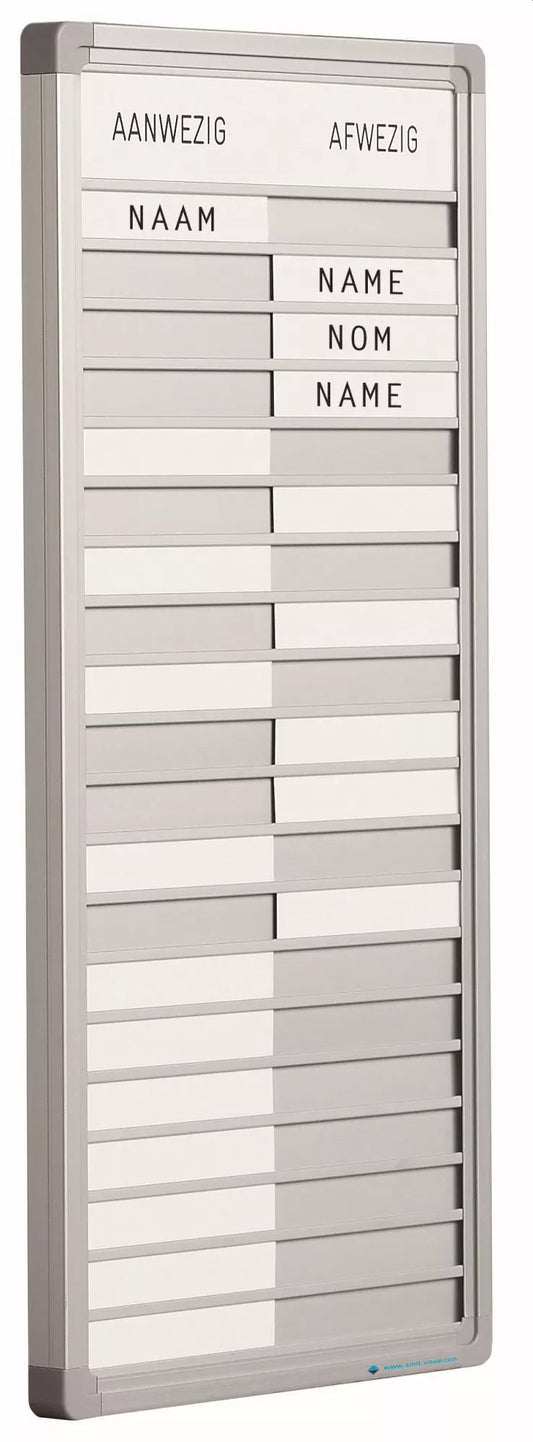 Aanwezigheidsbord 30 personen Louisa - RVS - Afwezigheidsbord - Schuivers - Presentatiebord - Duits - 74x24cm