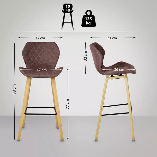 In And OutdoorMatch Barkruk Curt - Bruin hout - 80cm zithoogte Set van 1 - Voor keuken en bar - Met rugleuning - Ergonomische barstoelen