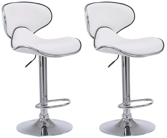 In And OutdoorMatch Barkruk Jana Bernadine - Wit - Chroom - Modern Design - Rugleuning - Voetensteun - Voor Keuken en Bar - Gestoffeerde Zitting - Imitatie Leder