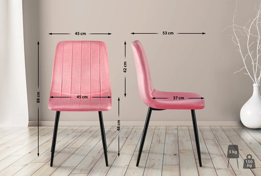 In And OutdoorMatch Eetkamerstoelen Guiomar - Roze - Set van 4 - Fluweel - Hoge kwaliteit bekleding - Decoratieve eetkamerstoel - Stabiel metalen frame
