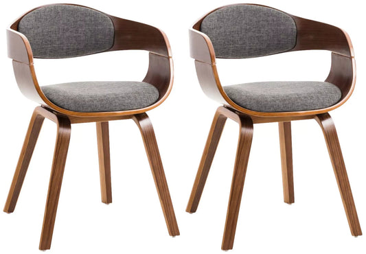 In And OutdoorMatch Stoel Roslyn - Eetkamerstoel - Donkerhout - Grijze stof - Houten poten - set van 2 - Zithoogte 48cm - deluxe