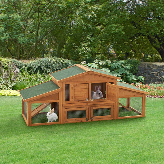 In And OutdoorMatch Konijnenhok Lucile - 72x180x62 cm - Houtkleurig - Grenen en Metaal - Voor Konijntjes - Voor Kleine Dieren