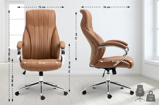 In And OutdoorMatch Bureaustoel Fabio - Karamelbruin - Echt leer - Hoogwaardige bekleding - Comfortabel gevoerd - Luxe uitstraling