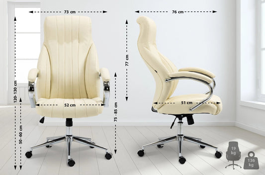In And OutdoorMatch Bureaustoel Franziska - Gebroken Wit - Echt leer - Hoogwaardige bekleding - Comfortabel gevoerd - Luxe uitstraling