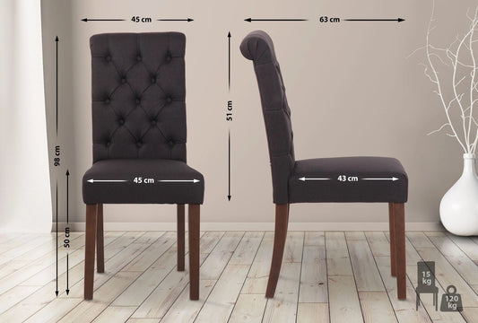 In And OutdoorMatch Eetkamerstoel Jason - Donkergrijs - Eetkamerstoel - Stof - Hoge kwaliteit bekleding - Stoel in antieke stijl - Luxe eetkamerstoel