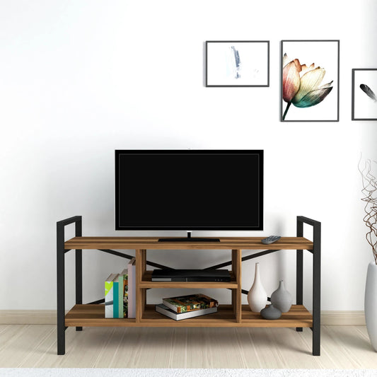 In And OutdoorMatch Tv-meubel Veno - Tv-meubel - Tv-meubel - 61x120x35 cm - Walnootkleurig - Spaanplaat en Metaal - Met Plank