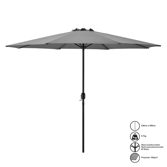 In And OutdoorMatch Parasol Edna - 300cm - Kantelbaar - Camping - Rond - Staand - Grijs - UPF 50 - Terras, balkon, tuin of strand