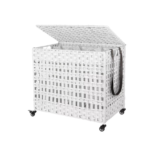 In And OutdoorMatch Wasmand Golin op wielen - Met handvatten - Wasbox - Rechthoek - Wassorteerder - Rotan vlechtwerk - 3 vakken