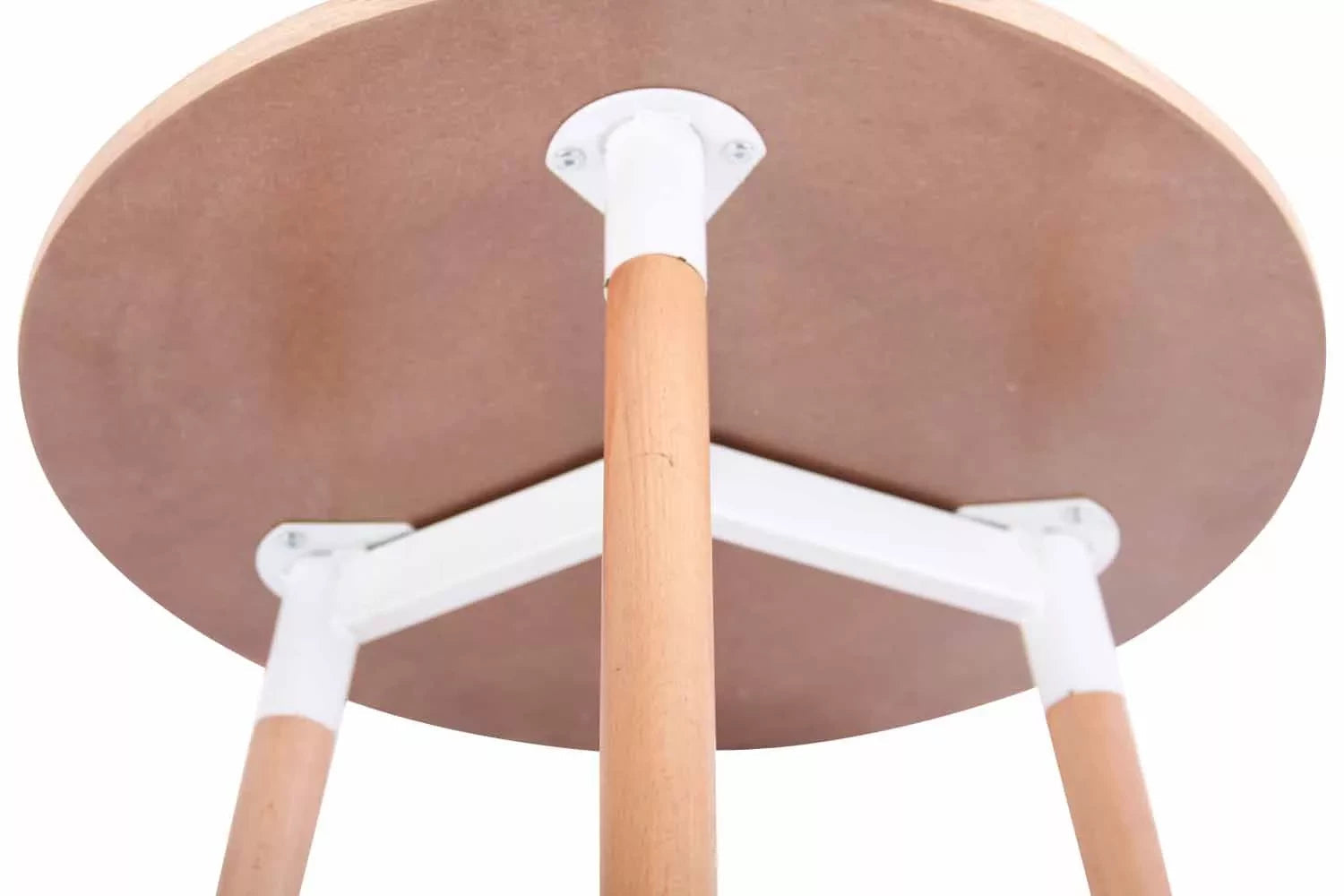 De perfecte bijzettafel! De modieuze 3-poots tafel zet accenten en is eenvoudig te integreren in elk interieur! Waar het jou uitkomt, want door het compacte formaat vindt hij overal een plekje. Deze delicate tafel is voorzien van een rond tafelblad van MDF. Dankzij de laminering is het oppervlak zeer onderhoudsvriendelijk. De tafelpoten zijn gemaakt van massief beukenhout. Het frame is voorzien van verstelbare vloerbeschermers, waardoor kleine oneffenheden in de vloer zonder problemen kunnen worden opgevangen. Uitgestrekte poten geven de eettafel stabiliteit en verfraaien het totaalbeeld. Van de moderne keukentafel heb je gegarandeerd lang plezier!