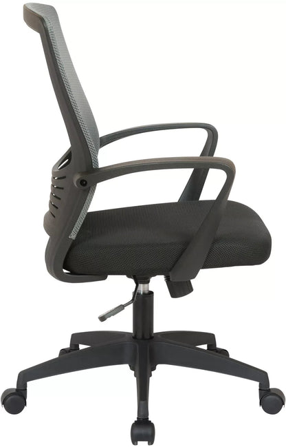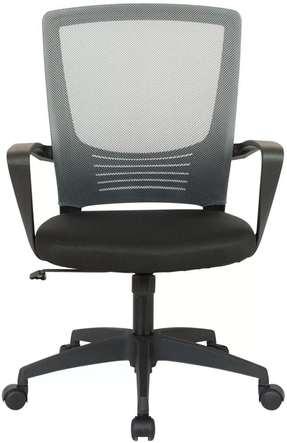 Deze draaistoel overtuigt door zijn moderne design en solide afwerking. Het zitcomfort wordt gegarandeerd door de bekleding en de ergonomische rugleuning. Dankzij de traploze hoogteverstelling en het schommelmechanisme is comfortabel zitten ook gedurende meerdere uren mogelijk. Bovendien heeft deze bureaustoel een onderhoudsvriendelijke mesh-bekleding die er niet alleen mooi uitziet, maar ook bijzonder ademend is. De bureaustoel staat stevig op een kunststof frame met vijf lichtlopende wielen. Zo rol je altijd gemakkelijk en losjes over de vloer – ongeacht of deze hard of met vloerbedekking is.