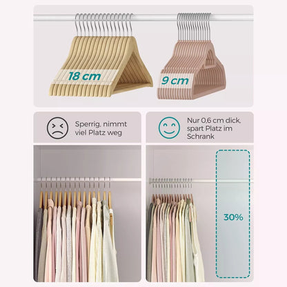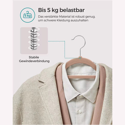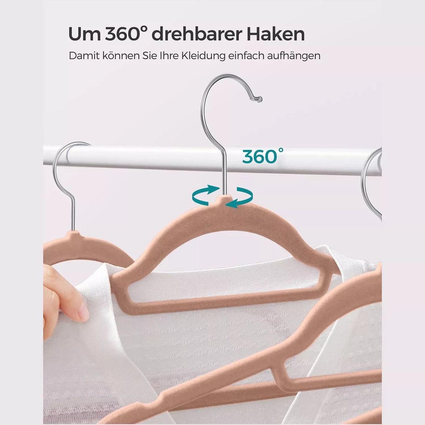 Productdetails: Kleur: bruinMateriaal: fluweel, ABS-kunststof, metalen haak Afmeting per hanger: 43,5 x 0,6 x 22,5 cm (L x B x H) Gewicht van 20 hangers: 1,6 kg Max. Statisch draagvermogen per hanger: 5 kg Leveringsomvang: 20 x kleerhangersInandOutdoormatch Opmerkingen: Hang geen natte kleding aan de hangers. Hang geen te zware kleding aan de hangers. Gebruik deze hangers niet in een wasdroger.