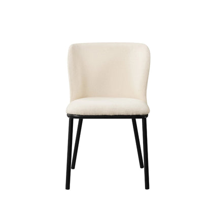 - Zitting en rugleuning : Beide zijn bekleed met hoogwaardige witte boucléstof. De zitting heeft een dikte van 5,5 cm en zorgt voor een zachte en ondersteunende zitervaring met schuimvulling.