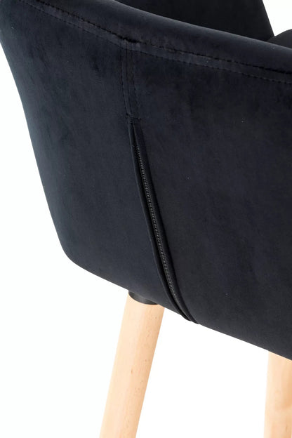 Deze barkruk geeft elke bar net dat beetje extra, ontworpen als een loungestoel, deze kruk overtuigt door zijn uitstraling. Dankzij de rugleuning en vorm is het mogelijk om meerdere uren comfortabel te zitten. De zitschaal met fluwelen bekleding en afneembare bekleding is gemakkelijk te onderhouden en de klittenbandsluiting zorgt ervoor dat de zitbekleding niet wegglijdt. Bovendien kan de hoes van het afneembare zitkussen eenvoudig worden verwijderd en gewassen met behulp van een ritssluiting. Het stevige vierpootsframe van beukenhout heeft een discrete metalen voetsteun en rondt het design van deze barkruk af. Een absoluut hoogtepunt voor gezellige uurtjes aan de bar.