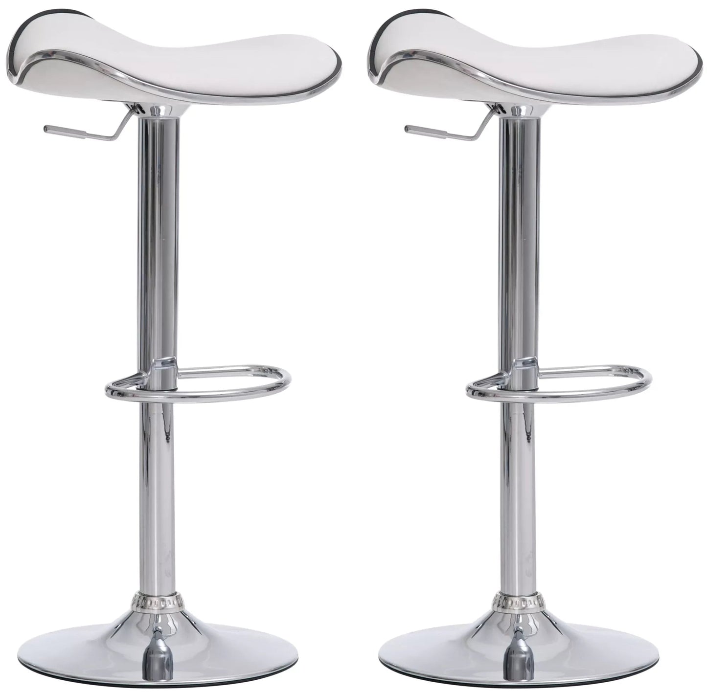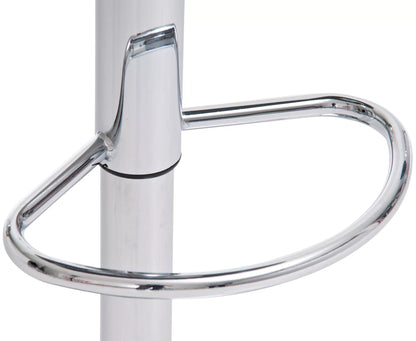De set barkruk (set van 2) maakt indruk met zachte rondingen en een elegante uitstraling. Hij is traploos in hoogte verstelbaar. Dankzij een gasveerhendel is hij geschikt voor alle baliehoogtes. De zitting en voetensteun zijn 360 graden draaibaar. Het metalen frame is volledig verchroomd. De zitting van synthetisch leer is gemakkelijk schoon te maken. Daarnaast zit er een rubberen ring onder de voet van de barkruk. De set beschermt daardoor gevoelige vloeren.