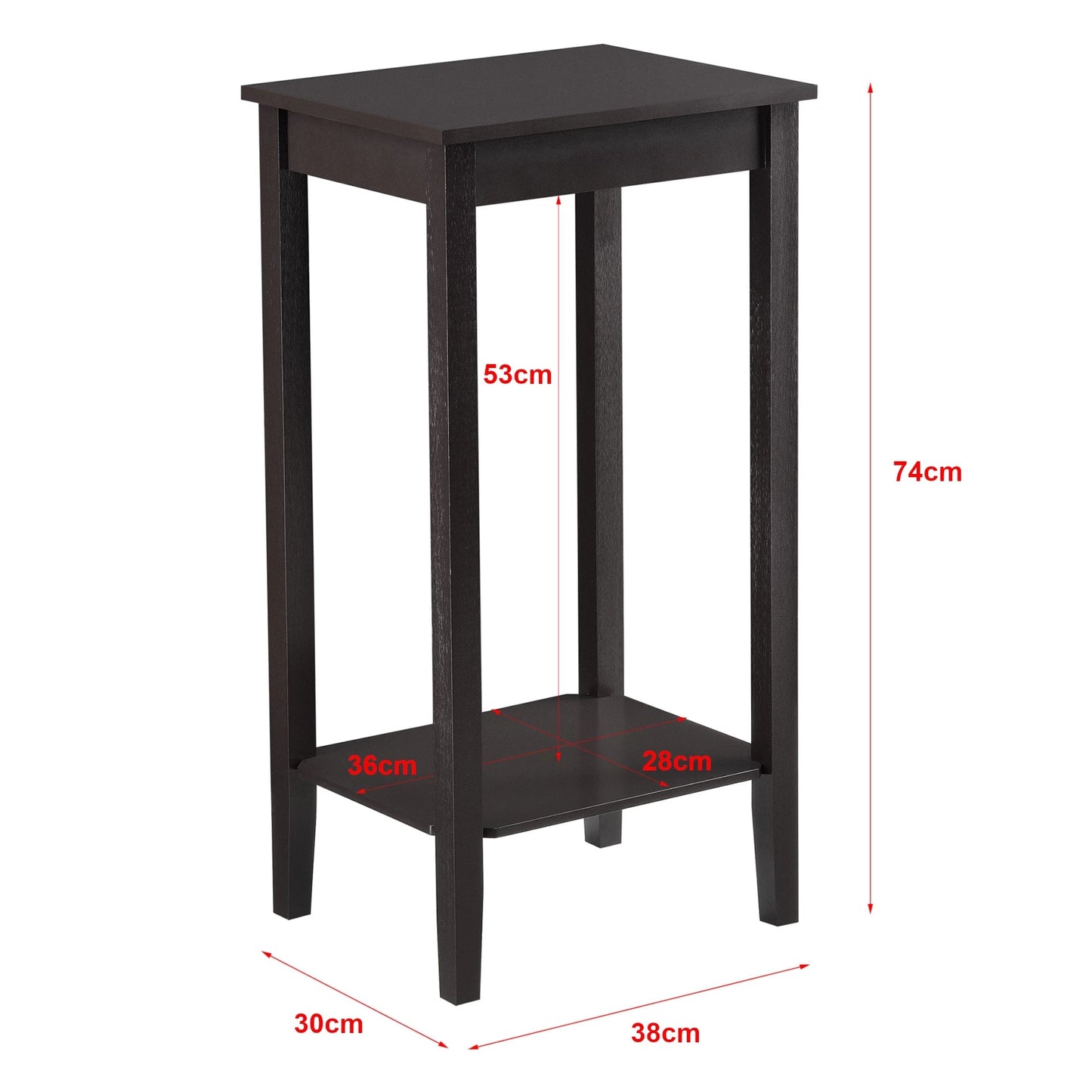 In And OutdoorMatch Bijzettafel Eriberto - Met Plank - MDF - 38x30x74 cm - Donkerbruin - Stijlvol Design