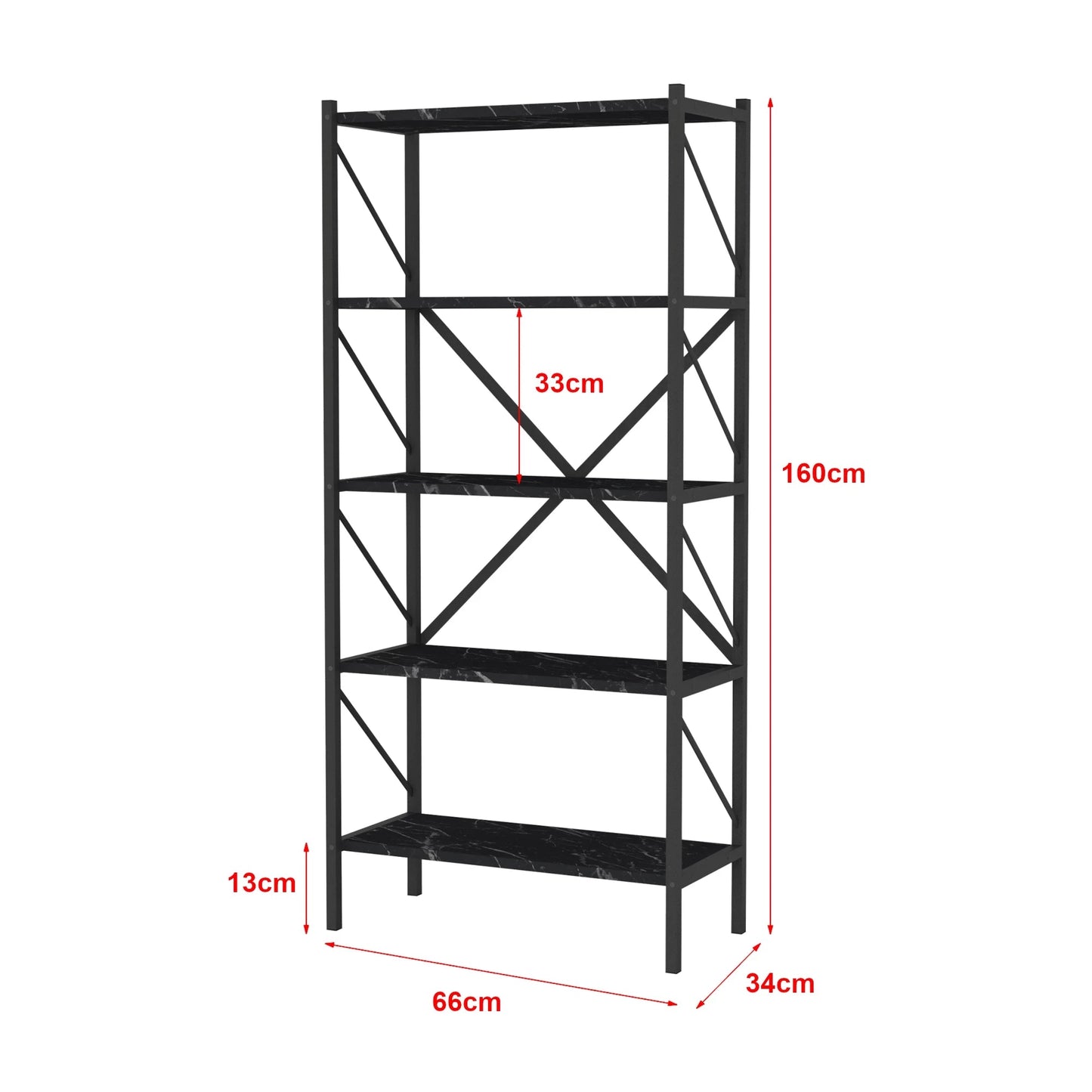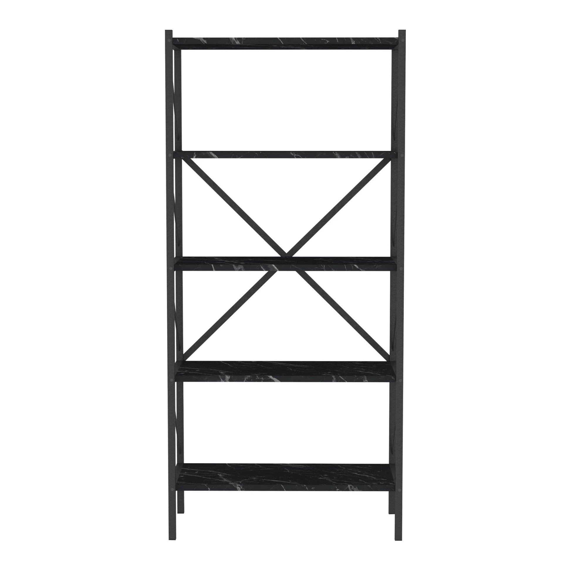 In And OutdoorMatch Boekenkast Plank Leonard - 160x66x34cm - Marmer Zwart en Antraciet - Spaanplaat en Metaal - Met Planken - Modern Design