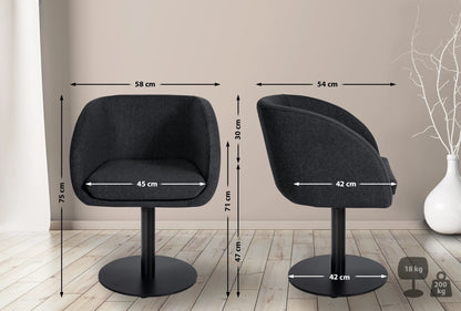 De Molly eetkamerstoel overtuigt door zijn eigentijds zitcomfort en geeft elke kamer een exclusieve uitstraling! De rondomlopende rugleuning en de vulling met vilten bekleding maken deze clubfauteuil tot een gezellige plek. De robuuste metalen bodemplaat zorgt voor een hoge stabiliteit en is voorzien van vloerbeschermers om uitglijden en krassen op de vloer te voorkomen. Of het nu in de woonkamer of logeerkamer, kantoor, wintertuin of eetkamer is - de Molly fauteuil past harmonieus in de omgeving.