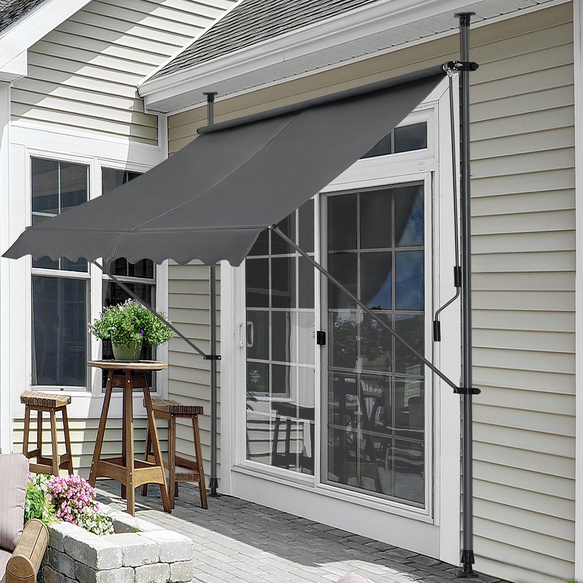 In And OutdoorMatch Klemluifel Addison - Handmatig Uitschuifbaar - Grijs - 300x120 cm - Uitvalarmluifel - Staal en Stof - UV Bescherming - Waterafstotend