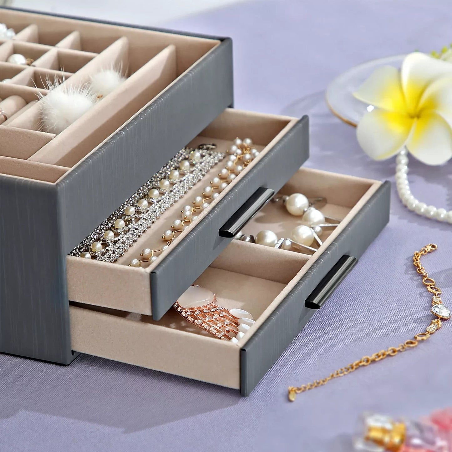 In And OutdoorMatch Luxe Sieradendoos met Glazen deksel Melany - Grijs - Sieradendoos - 3 Tier - 23,1x30,5x13,5 cm - Sieradendoos dames - Sieradendoos - Sieradendoos meisjes - Sieradenhouder - Sieradendoos voor volwassenen