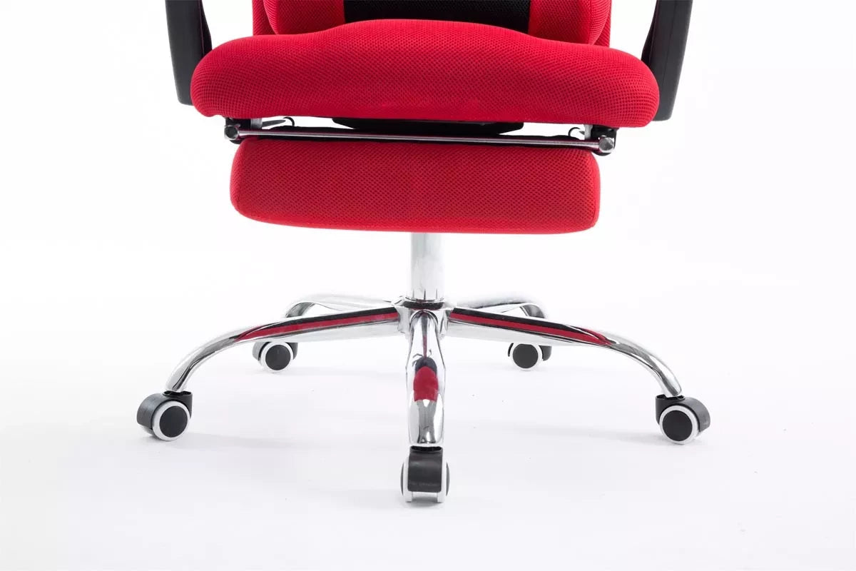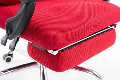 Op het gebied van comfort laat de bureaustoel niets te wensen over, want een geïntegreerde voetsteun en in hoogte verstelbare hoofdsteun zorgen voor gezelligheid over de hele linie. De voetensteun en hoofdsteun zijn in verschillende posities te brengen en eenvoudig aan te passen aan uw eigen wensen. Bovendien is ergonomisch zitten dankzij de traploos verstelbare zithoogte te allen tijde gegarandeerd. Het ingebouwde schommelmechanisme zorgt bovendien voor meer bewegingsvrijheid en flexibiliteit. De hoogwaardige bekleding en de onderhoudsvriendelijke stoffen bekleding met mesh-look overtuigen bovendien door hun lange levensduur. De bureaustoel staat veilig op vijf soepel lopende wielen en een metalen frame met chromen look. Of het nu harde vloeren of tapijten zijn, je rolt altijd gemakkelijk en losjes over de vloer.