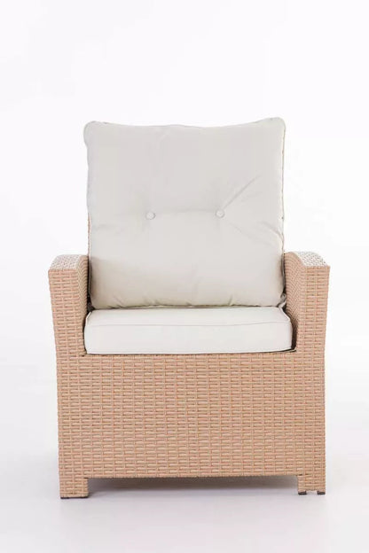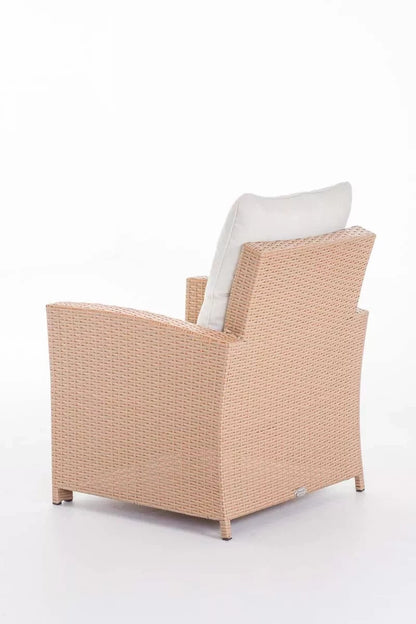 Flexibel en mooi gevormd - zo presenteert deze poly rattan fauteuil zich. De compacte fauteuil biedt met zijn comfortabele zit- en rugkussens een hoog comfortniveau - alle kussens en kussens zijn al bij de levering inbegrepen! Niet alleen is het hier prettig en comfortabel zitten, het is ook ergonomisch voordelig: de rugleuningen zijn licht naar achteren gekanteld, de armleuningen zijn aan de bovenkant licht afgerond. Je kunt overigens ook de 3-zitsbank en de bijpassende tafel bij deze fauteuil bestellen!