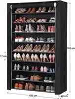 HOOGWAARDIGE STALEN BUIZEN EN KUNSTSTOF VERBINDINGEN Met een glad oppervlak zijn de stalen buizen corrosiebestendig en slijtvast. De plastic connectoren zijn zeer stabiel. WATERDICHTE PLANKEN. De fleece stofhoes is ademend en vochtbestendig. De 10 planken, gelamineerd met PP-folie, zorgen voor goed geventileerde schoenen en geven uw huis een opgeruimde, nette sfeer. Ook gemakkelijk in onderhoud! PRAKTISCH DEURGORDIJN Het rolgordijn wordt met klittenband bevestigd. De witte ritsen worden gebruikt om de deur gemakkelijk te openen en te sluiten. Het deurgordijn garandeert bovendien een stofvrije opslag van de schoenen en houdt nieuwsgierige blikken op afstand. VOLDOET PERFECT ZIJN DOEL Doe-het-zelf uitvoering. Licht en toch stabiel. Voldoende ruimte voor verschillende soorten schoenen zoals hoge hakken, ballerina's, kinderschoenen enz. Kan ook handschoenen, dekens, beddengoed opbergen. Met 2 zakken (14 x 14 cm) aan elke kant is het opbergen van Schuhbrsten, Handtaschen, Schuhlffeln etc. ook mogelijk. VEELZIJDIG Of het nu in de kelder, kinderkamer, slaapkamer, zolder of camping is, in de draagbare schoenenkast zijn je schoenen altijd goed opgeborgen. De kast is zeer ruimtebesparend en past in elke hoek. Gemakkelijk af te stoffen en schoon te maken AFMETINGEN: 100x28x162cm
