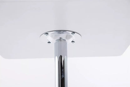 Deze exclusieve statafel bestaat uit een stabiele aluminium kolom met een rond aluminium onderstel.