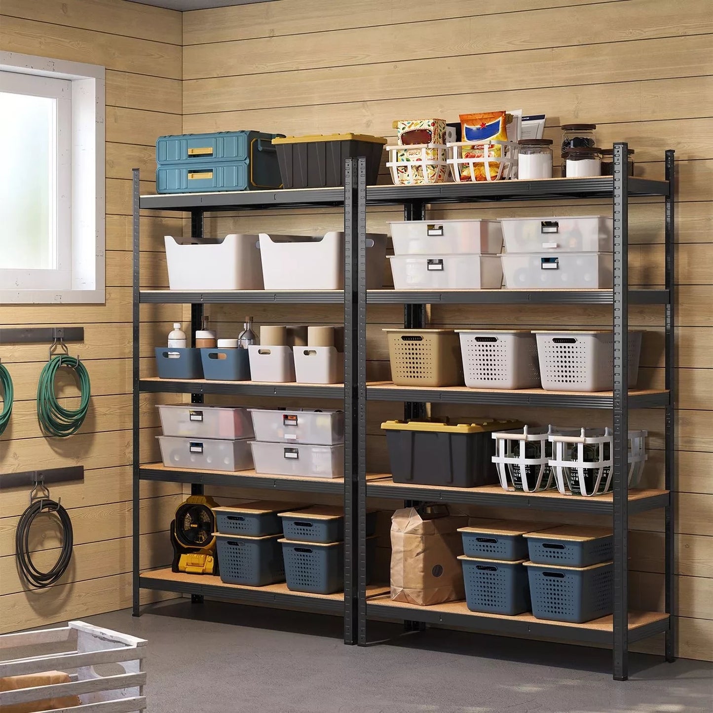 Productdetails: Kleur: zwart Materiaal: gepoedercoat staal, MDF (medium-density fibreboard) Afmetingen per plank: 60 x 120 x 200 cm (D x B x H) Gewicht per plank: 22,8 kg Max. statisch draagvermogen per plank: 175 kg Max. Totaal statisch draagvermogen per plank: 875 kg Inhoud verpakking: 2 x opbergrek 2 x anti-tips 1 x instructies In en buiten match Opmerkingen: Bevestig het product aan de muur met de meegeleverde anti-tips om de veiligheid tijdens het gebruik te garanderen. Draag altijd handschoenen tijdens de montage. Plaats de Plaats het product niet in een vochtige omgeving. De max. draagvermogen in de tekst verwijst naar het maximale statische gewicht. Om het transport te vereenvoudigen, wordt het product in 2 pakketten geleverd. Deze komen meestal tegelijkertijd aan. Even geduld als u in eerste instantie slechts één pakket ontvangt. Het tweede pakket zou kort daarna ook moeten arriveren.