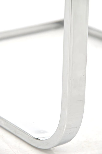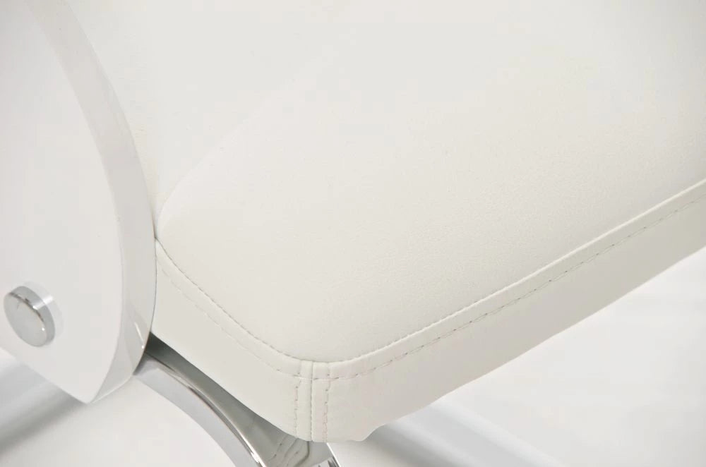 De zitting en de extravagant gebogen rugleuning van de designschommelstoel zijn gemaakt van duurzaam MDF en kunstleer en worden ondersteund door een modern chroomframe, dat een vrij schommeleffect creëert. De stoel is door zijn ongevoelige oppervlakken zeer eenvoudig schoon te maken en overtuigt door zijn hoogwaardige afwerking.