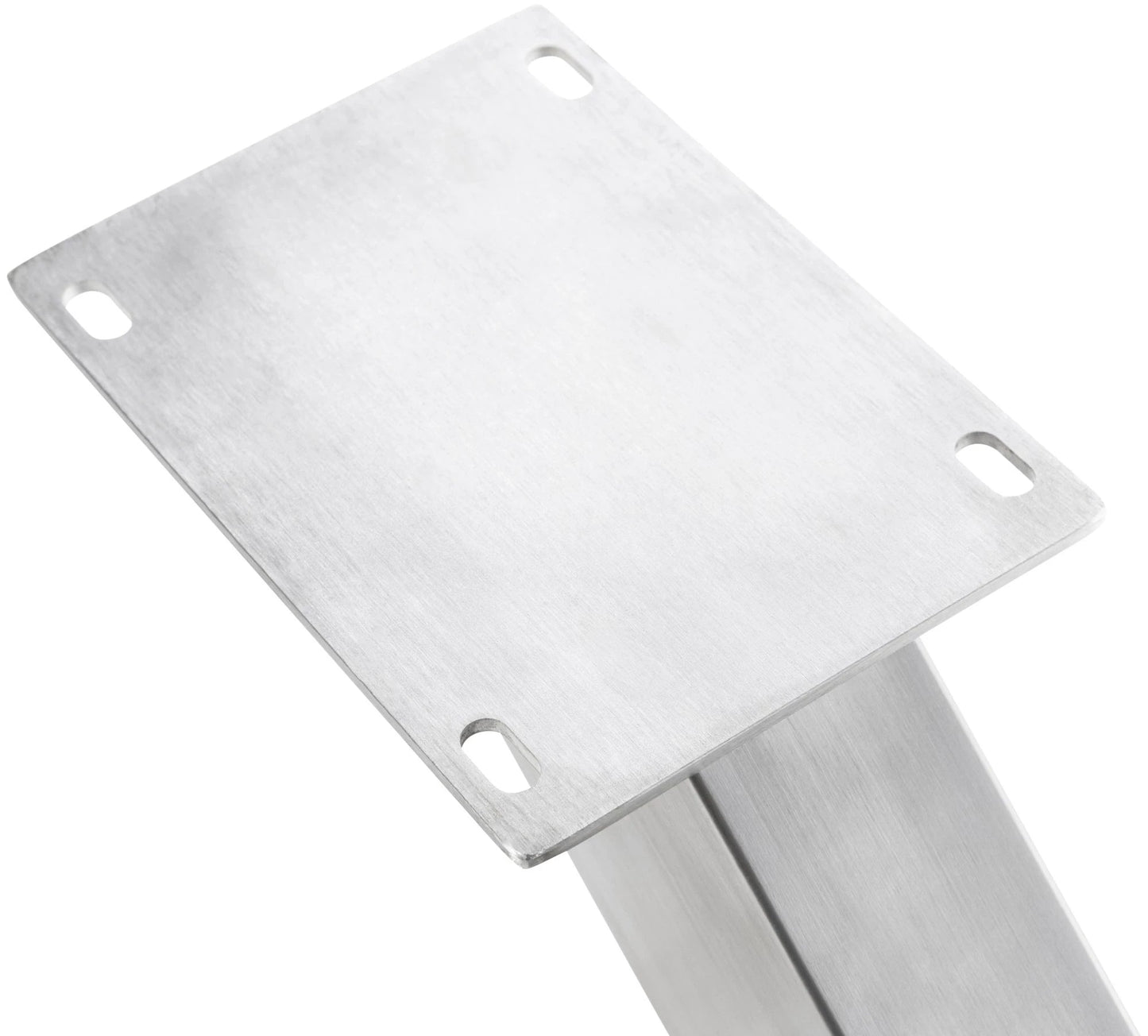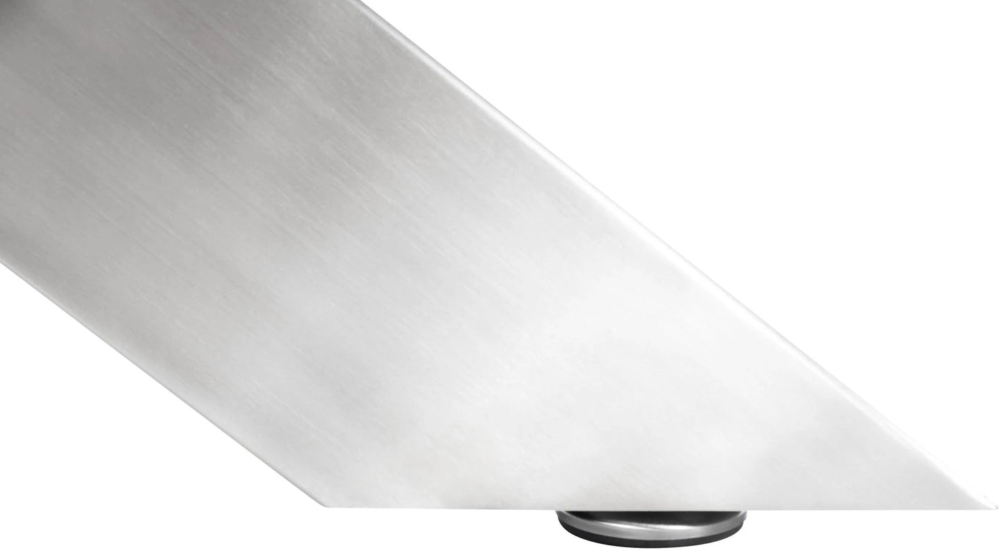 De geborstelde look van het frame maakt een breed scala aan toepassingen mogelijk, zowel in woon- als werkruimtes. Deze tafelpoten zijn ideaal voor salon-, woonkamer- en eetkamertafels, maar kunnen ook gebruikt worden als onderstel voor een vergadertafel. De tafellopers van stevige vierkante profielen zijn gemaakt van hoogwaardig roestvrij staal. De gaten voor de bevestigingsschroeven zijn voorbereid voor een eenvoudige installatie. De schroeven zijn uiteraard bij de levering inbegrepen. Ook zijn er hoogwaardige vloerbeschermers aan de voeten bevestigd. Deze voorkomen krassen op de vloer en maken het mogelijk om kleine oneffenheden te compenseren.