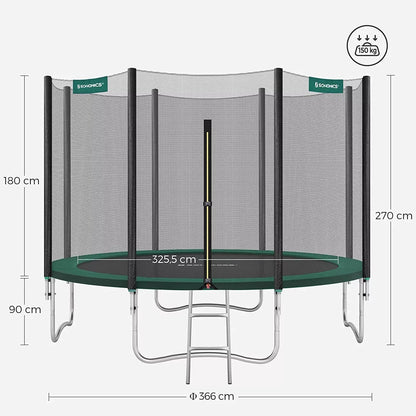 In And OutdoorMatch Trampoline Rosalia - 366 cm - Met veiligheidsnet & ladder - Groen - Rond - Tuin - tot 150 kg belasting