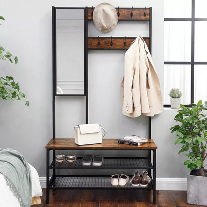 KAPSTOK: Verminder de rommel op de vloer in uw hal en upgrade naar een XL wandkapstok, die u en uw gasten voldoende ruimte geeft om uw jassen, sleutels, portemonnees en meer op te hangen na een lange dag op het werk. MULTIFUNCTIONEEL REK MET PLANK: Dit multifunctionele rek wordt geleverd met 6 haken, een plank voor al uw accessoires en een rail waaraan u hangers voor uw jassen kunt ophangen. VERSIER JE GANG: Het industriële en rustieke ontwerp van deze kapstok is perfect voor mensen die wat sfeer aan de gang willen toevoegen. De mix van de rustieke planken en het ijzeren frame zorgt voor een stedelijk maar warm karakter. AFMETINGEN: 30x88x27 cm